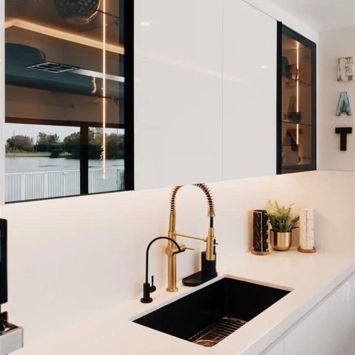 Storage solutions have been ingeniously incorporated, offering ample space to stow away utensils and kitchen essentials, keeping the pristine elegance of the kitchen uninterrupted. Drawers glide smoothly, and cabinets open effortlessly, reflecting the precision of our craftsmanship and attention to every detail.